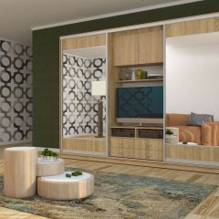 Шкаф-купе Валерия с нишей под ТВ 3000 ЛДСП/Зеркало/ЛДСП (Монорельс) ЛДСП 2 кат.
