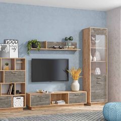 Модульная Гостиная Эго (дуб крафт золотой/камень темный) цоколь